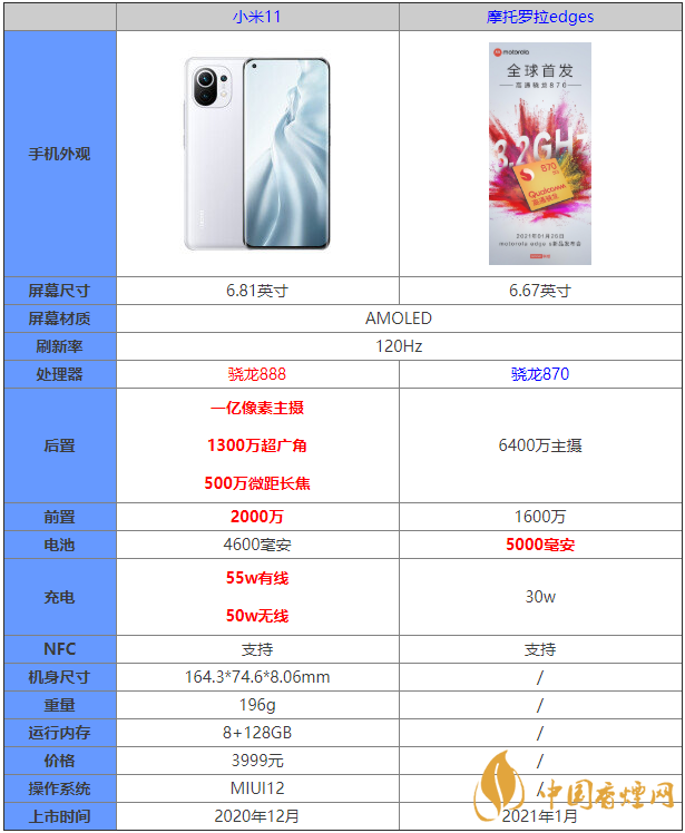 摩托羅拉edges和小米11參數(shù)對比 哪款手機更值得入手