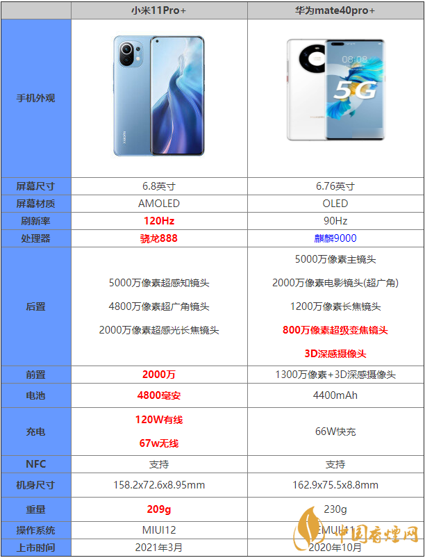 小米11Pro+最為小米11系列中最高配的手機(jī)和之前的華為mate40pro+相比較的話到底是哪一款手機(jī)有著更加好的性能表現(xiàn),這兩款手機(jī)又什么區(qū)別?哪款手機(jī)更值得入手?下面香煙網(wǎng)小編將為大家?guī)硇∶?1Pro+和華為mate40pro+參數(shù)對(duì)比,感興趣的朋友一起來看看吧!