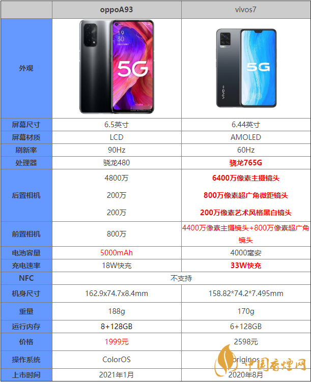 oppoa93和vivos7參數(shù)對比-哪款手機(jī)更值得入手