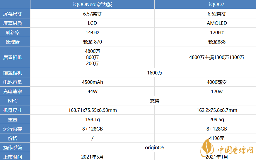 QOONeo5活力版和iQOO7參數(shù)配置對(duì)比