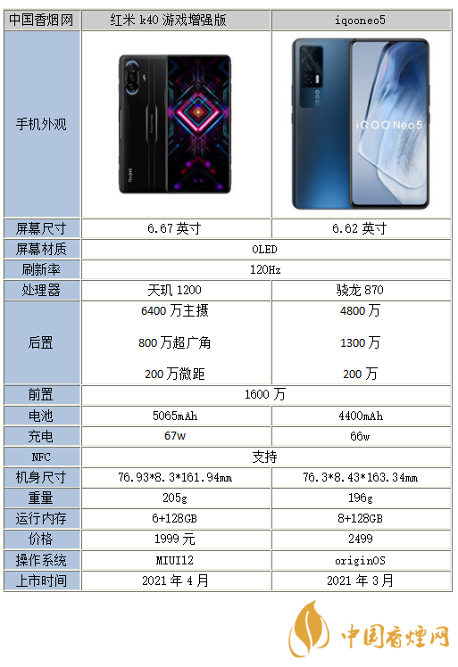 以上就是小編收集到的紅米k40游戲增強版和iqooneo5哪個好-紅米k40游戲增強版和iqooneo5對比的相關內容,以上內容均來源于網(wǎng)絡,僅供參考,一切以實際為準,更多最新數(shù)碼資訊請關注香煙網(wǎng)。