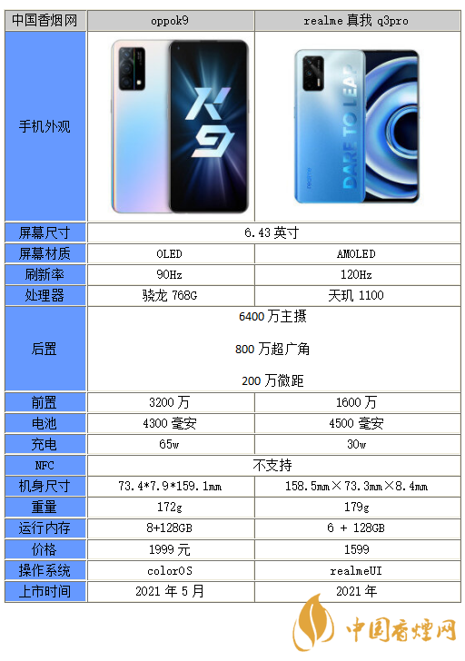 以上就是小編收集到的OPPOK9和真我Q3Pro哪個好-OPPOK9和真我Q3Pro參數(shù)對比的相關(guān)內(nèi)容,以上內(nèi)容均來源于網(wǎng)絡(luò),僅供參考,一切以實際為準(zhǔn),更多最新數(shù)碼資訊請關(guān)注香煙網(wǎng)。