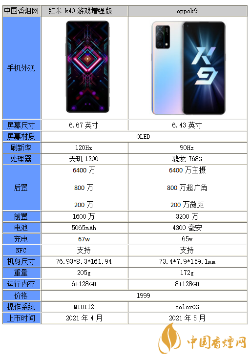 以上就是小編收集到的oppok9和紅米k40游戲增強(qiáng)版買(mǎi)哪個(gè)-參數(shù)性能對(duì)比的相關(guān)內(nèi)容,以上內(nèi)容均來(lái)源于網(wǎng)絡(luò),僅供參考,一切以實(shí)際為準(zhǔn),更多最新數(shù)碼資訊請(qǐng)關(guān)注香煙網(wǎng)。
