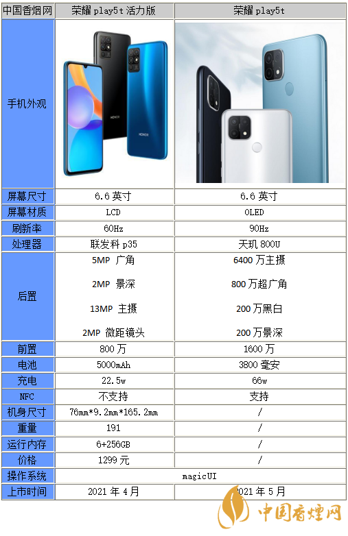 以上就是小編收集到的榮耀play5和榮耀play5t活力版區(qū)別在哪-參數(shù)性能分析的相關(guān)內(nèi)容,以上內(nèi)容均來源于網(wǎng)絡(luò),僅供參考,一切以實(shí)際為準(zhǔn),更多最新數(shù)碼資訊請(qǐng)關(guān)注香煙網(wǎng)。