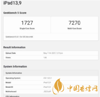 從微博博主“數(shù)碼閑聊”爆料的信息來(lái)看iPadPro2021單核得分:1727,多核得分:7270。