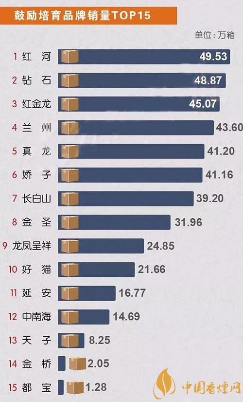 鼓勵(lì)培育香煙品牌銷量中,紅河香煙居第一位,年輕品牌鉆石香煙以微弱差距屈居第二,第三名紅金龍緊隨其后。蘭州、真龍、嬌子、長白山、金圣、龍鳳呈祥、好貓、延安、中南海、天子、金橋、都寶分別為4-15名。