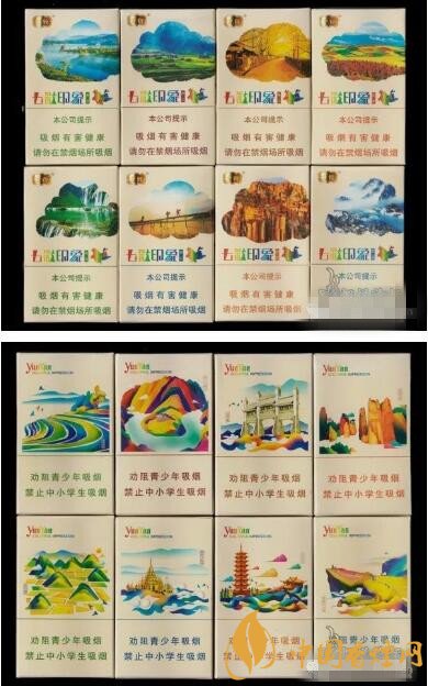 云煙•七彩印象每包產(chǎn)品的煙標都以當?shù)鼐哂写硇缘拿谰盀閯?chuàng)意,采用正面實景、背面寫意手繪的包裝設計。據(jù)說,云煙•七彩印象分別采用云南16個市州具有代表性的風景作為包裝特色,每一包產(chǎn)品煙標都不同。