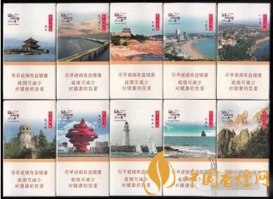青島十景是好客系列套煙中的第一套,十景名稱:棧橋、膠州灣大橋、水族館、匯泉灣、八大關、花石樓、五四廣場、奧帆中心、石老人、嶗山風光。