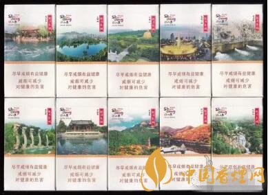 濟南十景名稱:趵突泉、大明湖、千佛山、泉城廣場、黑虎泉、五龍?zhí)丁倜}泉、靈巖寺、紅葉谷、九如山。濟南十景的包裝與“青島十景”的差別比較明顯,兩個側面全部采用金色。另外,警示語位置正版明顯偏上。