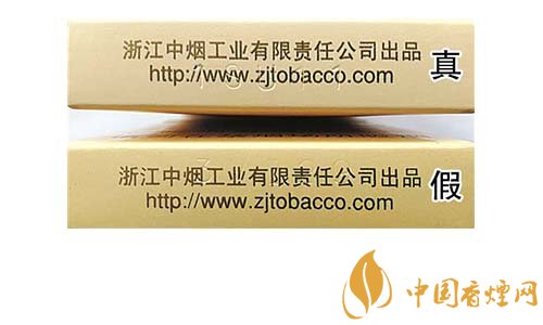真煙鋼印為機(jī)器動態(tài)打印,整體鋼印較深、間距不等,其位置與企業(yè)網(wǎng)址重疊;假煙鋼印一般為手工靜態(tài)打印,鋼印較淺,位置與文字重疊。