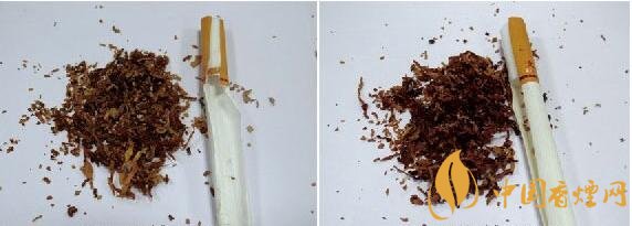 真品煙絲均是從醇化好的“紅花大金元”煙葉中手工甄選出千分之一,成為“云煙(軟大重九)”的主原料,從源頭到工藝的“四級調(diào)香”體系,形成了獨具特色的津甜香,切絲寬度均勻一致且無其他雜質(zhì);假煙從原料到煙絲結(jié)構(gòu)均無法達到真品煙絲成色及摻配比例,假煙煙絲雜質(zhì)較多,與真品煙絲結(jié)構(gòu)存在明顯差異。(左真右假)