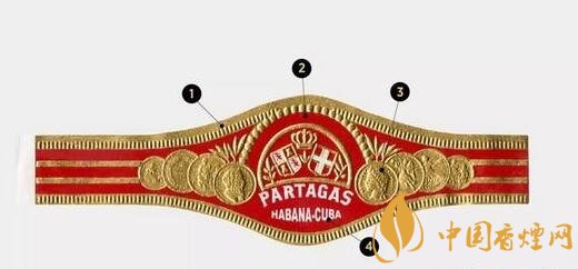 帕塔加斯的茄標(biāo)以大紅底色和金色浮雕裝飾為主,字體部分采用了白色??雌饋韽?fù)雜的浮雕效果,細(xì)節(jié)就成了辨別真?zhèn)蔚暮诵模?/p>