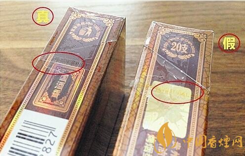 假冒:煙支過(guò)濾嘴上的“貴煙”二字和酒樽造型的“貴”字是印刷工藝,差距甚大。