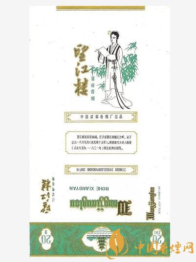 上世紀80年代,中國成都卷煙廠曾出品有“望江樓”煙標,該標主版描繪了在郁郁蔥蔥的竹林映襯下,薛濤手捧“薛濤箋”正在思索的畫面;底標位置印有“望江樓原名崇麗閣,位于成都東南錦江之畔,建于公元一八八九年(清光緒十五年)。我國唐代女詩人薛濤(公元七五九~八三一年)曾在此取水制箋”字樣。