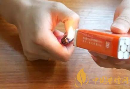 首先準備一個打火機,一般煙不離火,抽煙的人都會必備的,在香煙底部一側(cè)燙一個正方形缺口。