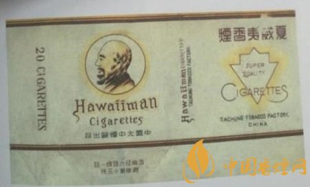 上世紀四十年代,由濟南煙廠出品的“夏威夷”牌卷煙,為橫標。正版一圓框內是一中年男子的側面肖像。此人名叫陳芳,正是當時大清國駐夏威夷王國的第一任領事。夏威夷還不是美國領土時,陳芳已在當?shù)貜氖律虡I(yè)貿易活動,并獲得成功,成為華僑首富。他帶動了夏威夷檀香木和制糖兩大行業(yè)的發(fā)展。肖像的圓環(huán)外有金黃色光暈,襯托他的與眾不同。副版上從右至左寫有“夏威夷香煙”,其下畫有一倒置的盾牌框,框內寫有“Super Quality”,即高品質,外圍亦有金黃色光暈,與正版的光暈呼應。煙標的底部還留有煙廠的詳細地址。