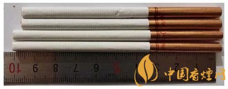真品卷煙:煙支長度為100mm,濾嘴處有四排激光預打孔,打孔透氣度好。卷煙紙顏色白,手摸煙支飽滿緊實,搭扣處結合完美。煙絲呈現(xiàn)絲條狀,色澤基本一致。