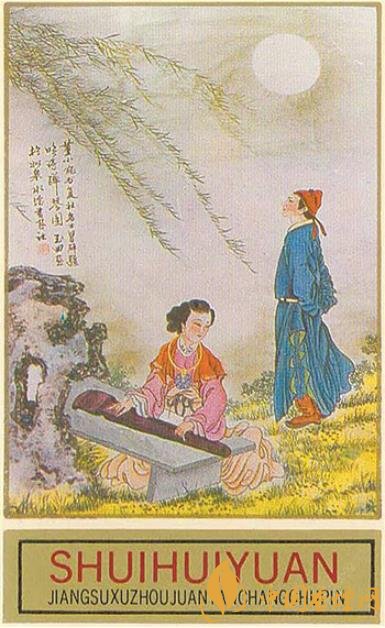 江蘇徐州卷煙廠出品于上世紀(jì)90年代的白底“水繪園”煙標(biāo),主版為水繪園遠(yuǎn)景圖;副標(biāo)展現(xiàn)的是:皓月當(dāng)空之夜,明末清初文學(xué)家冒襄(字辟疆)佇立于幽雅寧靜、垂柳依依的水繪園中,聚精會(huì)神地傾聽秦淮名妓董小宛彈奏古箏的場(chǎng)景;側(cè)標(biāo)印有相關(guān)文字介紹:“水繪園,中華園林之‘孤本’。明末四公子之一的冒辟疆,偕金陵名妓董小宛棲隱如皋水繪園。斯時(shí),文人志士薈集其間,氣節(jié)風(fēng)流,名動(dòng)天下。”此外,我國火柴生產(chǎn)企業(yè)也出品過寄予“有情人終成眷屬”祈盼的火花。