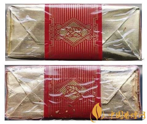真品卷煙:1.封簽圖案印刷清晰,圖案及線條顏色明亮,線條印刷粗細(xì)相同。2.鋁箔紙顏色金色深,凹點均勻,距離適中。