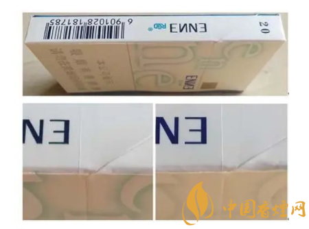 (4)真品卷煙“enne”小寫(xiě)字母筆畫(huà)立體感強(qiáng)。假冒卷煙小寫(xiě)字母筆畫(huà)無(wú)立體感。