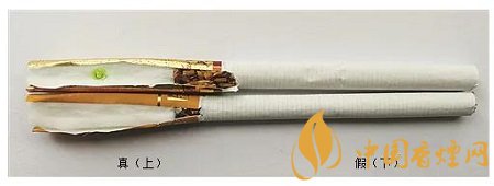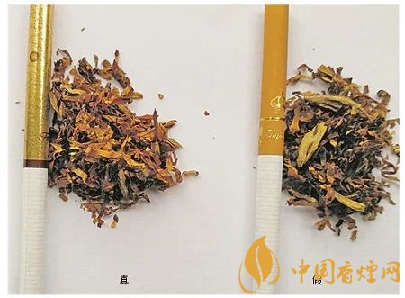 真品卷煙煙絲切絲寬度均勻,煙絲疏松、光澤油潤(rùn)性好、呈檸檬黃色,煙絲結(jié)構(gòu)為純?nèi)~絲。
