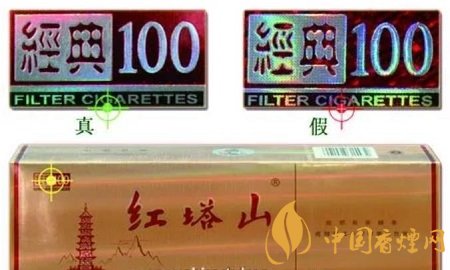 “紅塔山(硬經(jīng)典100)”是紅塔煙草(集團)有限責任公司出品的全國知名卷煙,深受廣大消費者的喜愛。為提高消費者和零售商戶對假冒卷煙的甄別能力,現(xiàn)將查繳的假冒“紅塔山(硬經(jīng)典100)”部分特征與真品卷煙相比較,對照圖片如下: