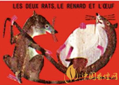 法國(guó)著名煙草經(jīng)銷(xiāo)機(jī)構(gòu)塞塔公司推出過(guò)系列伊索和拉封丹寓言卡通火花,其中的“鼠火花”內(nèi)容詼諧,十分有趣?!峨p鼠、狐貍和雞蛋》(圖二)讓外界不要低估老鼠的智慧。狡猾的狐貍原本認(rèn)定老鼠搬不了雞蛋,不料兩個(gè)耗子狡黠協(xié)作,一個(gè)躺倒抱住雞蛋的同時(shí)直接讓伙伴拽拉著它的尾巴,彼此安然回洞!《老鼠和牡蠣》(圖三)是說(shuō)被誘惑和貪婪的后果很?chē)?yán)重:內(nèi)陸之鼠初到海邊,看到張殼做日光浴的牡蠣新奇不已,竟一頭伸進(jìn)殼中欲以秀色為餐,結(jié)果……即刻就要閉合的美艷景色不會(huì)免費(fèi)啊!
