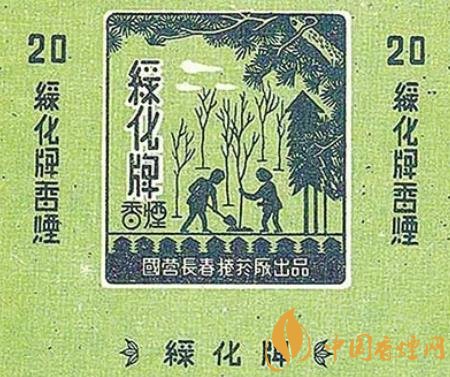 上世紀(jì)50年代,國(guó)營(yíng)長(zhǎng)春卷煙廠出品了“綠化牌”煙標(biāo)。這枚煙標(biāo)以綠色為底色,主版采用剪影的形式描繪了一幅植樹(shù)圖,畫(huà)面上一個(gè)人扶著樹(shù)苗,另外一個(gè)人揮鍬培土,不遠(yuǎn)處是已經(jīng)栽種好的一棵棵樹(shù)苗,在樹(shù)苗右上方,高大濃密的松樹(shù)如母親一般呵護(hù)著小樹(shù)苗;副版上印著“大家植樹(shù) 綠化祖國(guó) 護(hù)林防火 人人有責(zé)”的字樣。