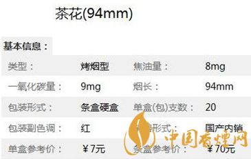 在了解了細(xì)支白盒茶花煙多少錢一包 之后,為了大家能更詳見的了解此煙,小編特意將茶花(94mm)香煙的核心參數(shù)進行了整理,以便于對它進行更深入的了解。