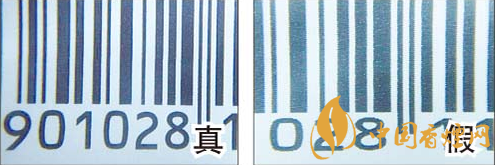 放大鏡下,真煙條形碼黑白顏色交界處平滑且鋸齒狀不明顯;假煙條形碼黑白顏色交界處鋸齒狀明顯。