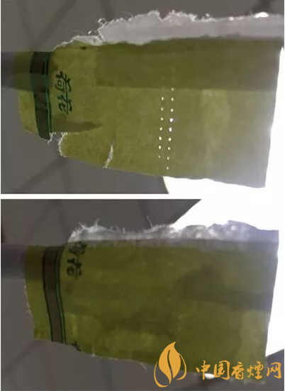 真品卷煙接裝紙上有2排激光打孔,孔點(diǎn)均勻、排列整齊;