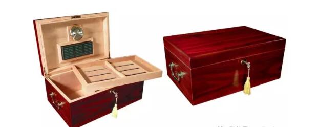 現(xiàn)在雪茄保濕盒一般采用后兩種方式,應用最廣泛,也是最普通的是第二種,使用中等密度纖維板作為主體,膨脹度較小,用西班牙雪松木皮作為內(nèi)襯又能比較好的存儲雪茄。那些比較昂貴的雪茄保濕盒通常會采用第三種方式,內(nèi)襯是西班牙雪松木皮,主體結構用的是硬木,給硬木皮上高光漆更容易些,同時也更有質(zhì)感。另外一個原因是很多硬木本身就是昂貴的。