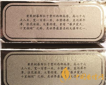 背面商標(biāo)紙印刷工藝差異對比:真品商標(biāo)紙采用銀卡紙,膠印印刷,背面鐳射防偽中圖案層次分明、瀑布立體感強、瀑布底部沒有明顯的黑色分割線;假煙背面鐳射防偽中圖案層次模糊、瀑布沒有立體感、瀑布底部有明顯的黑色分割線,商標(biāo)紙印刷工藝與真品特征存在明顯差異。