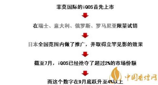 這種技術改革和行業(yè)發(fā)展為企業(yè)和煙民創(chuàng)造了雙贏的局面,加熱不燃燒(HnB)在減少煙草相關危害方面的作用不僅僅是體現在技術理論層面,且已經有商業(yè)實例。例如菲利普莫里斯公司的加熱不燃燒產品iQOS憑借其容易使用、沒有煙灰和二手煙、以及充分模擬了吸煙的感覺等特點,目前在日本、葡萄牙、意大利、羅馬尼亞和俄羅斯等地受到了消費者極大歡迎。自2016年第二季度開始,iQOS在日本全國范圍內推出后,已經獲得了12%的市場份額。富國銀行分析師Bonnie Herzog對加熱不燃燒(HnB)產品的前景持樂觀態(tài)度:“估計到2025年,菲利普莫里斯公司的iQOS可能會取代發(fā)達市場30%的傳統卷煙業(yè)務。”