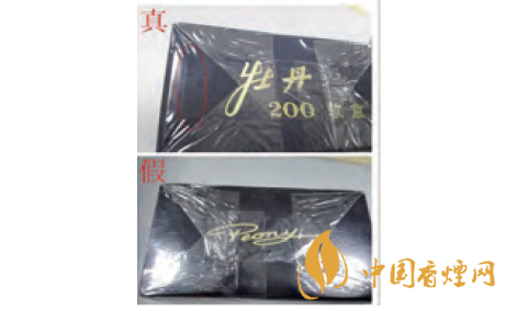 正面商標(biāo)紙差異對比:真品卷煙采用絨面印刷工藝,花形悉心勾勒,更顯質(zhì)感,圖案“牡丹花”更為寫實。假冒偽劣“牡丹(軟藍)”多以舊版“牡丹花”造型進行模仿,其圖案與真品存在明顯差異。