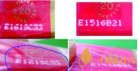 5、激光打碼:真煙采用雙層激光打碼,把外膜揉起,能看到打碼的痕跡。假煙一般都是直接印刷在包裝上,沒有打碼痕跡。這種方法同樣也適用于條盒包裝。